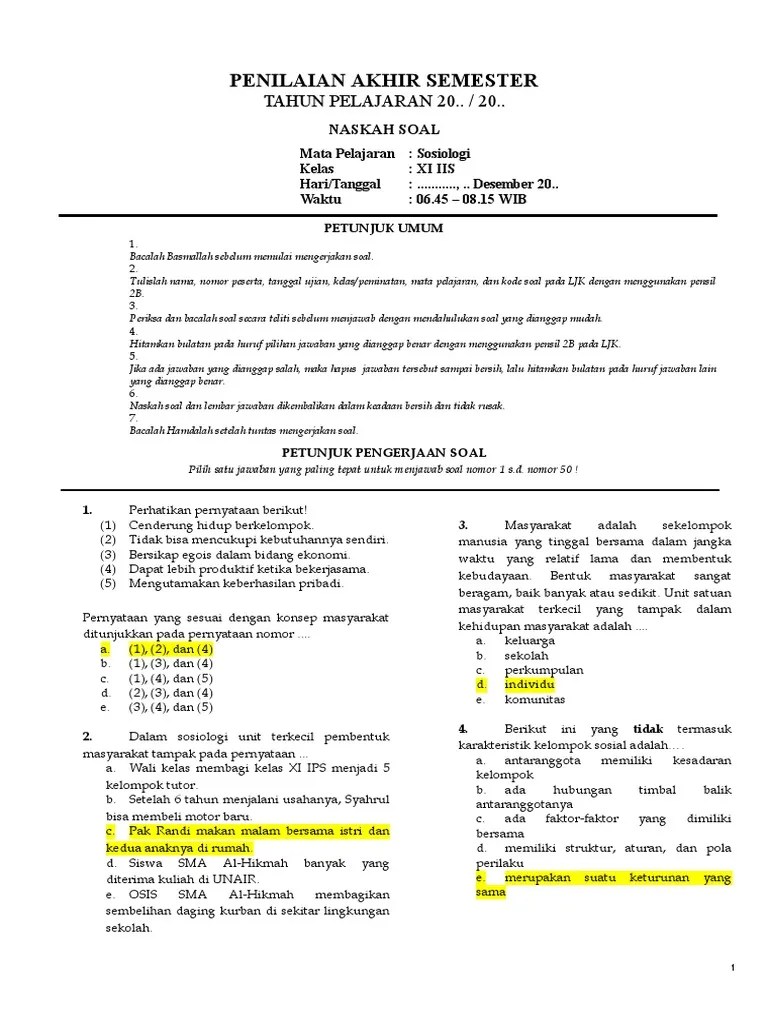 Pilihan ganda soal dan jawaban uas sosiologi kelas xii sebanyak 40 butir soal.